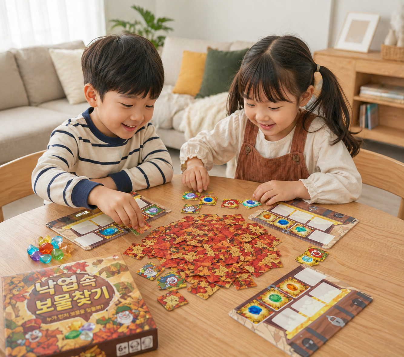 한국콘텐츠진흥원이 발표한 게임 이용자 실태조사에 따르면, 가족 단위 게임 이용자의 60% 이상이 '규칙이 쉬운 게임'을 선호한다고 답했습니다(출처: 한국콘텐츠진흥원). 낙엽속 보물찾기는 이 선호도에 정확히 부합하는 게임이라고 생각합니다.